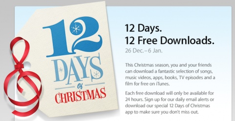 Από τις 26 Δεκεμβρίου έως και τις 6 Ιανουαρίου, η Apple θα προσφέρει δωρεάν επιλεγμένα τραγούδια, video clip, εφαρμογές, βιβλία καθώς και TV shows.